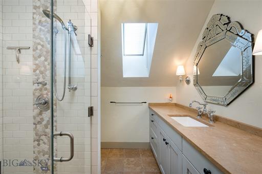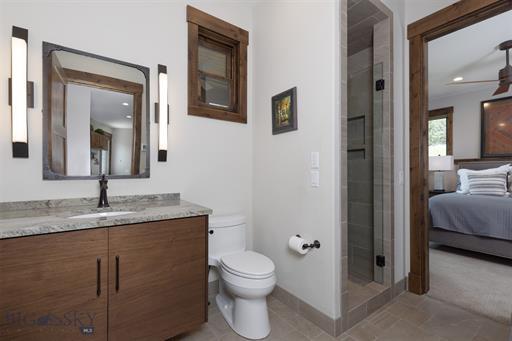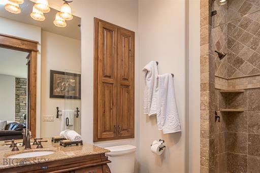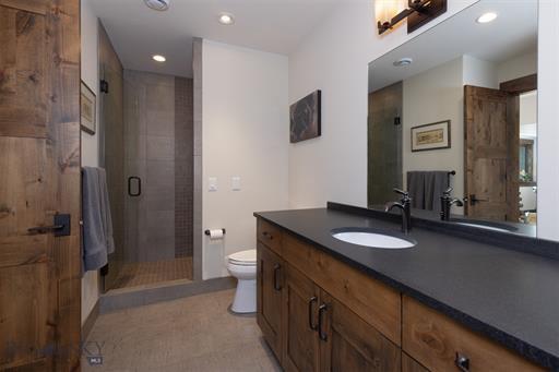 Lower level bedroom 2. Queen. Has a private bath. Ensuite bathroom to lower level bedroom. "Bonus bunk room of bedroom 1.