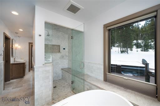Master bathroom is large, luxurious and has ample space for two! Great storage, lighting and finishes!