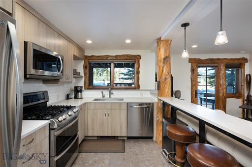 5 Foot galley sink with 3 faucets. Lots of counter space.