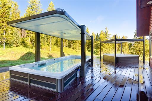 Bathroom detail Hot tub under private, covered deck of the upstairs bedroom.
