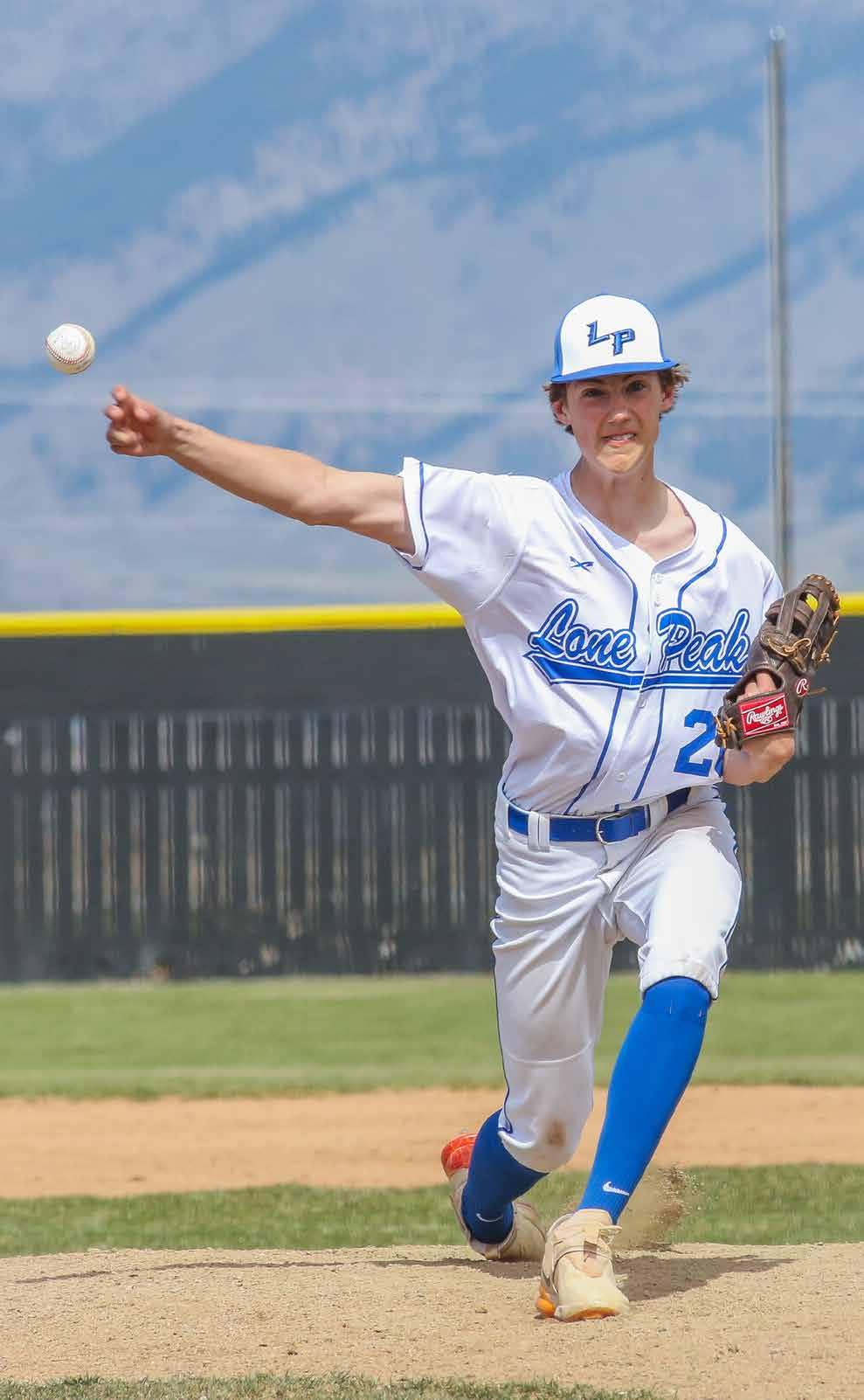 Sophomore Oliver McGuire takes the mound for Lone Peak High School’s one-year-old baseball team. The Big Horns are a youthful bunch, with many talented players in the ninth and 10th grades, so they exceeded expectations by making the playoffs in 2024.