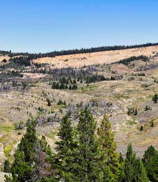 Hummocky topography on a landslide under Black Butte in Yellowstone National Park. PHOTO BY PAUL SWENSON