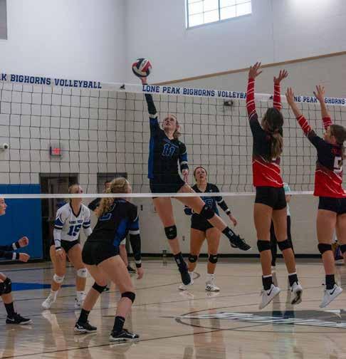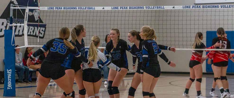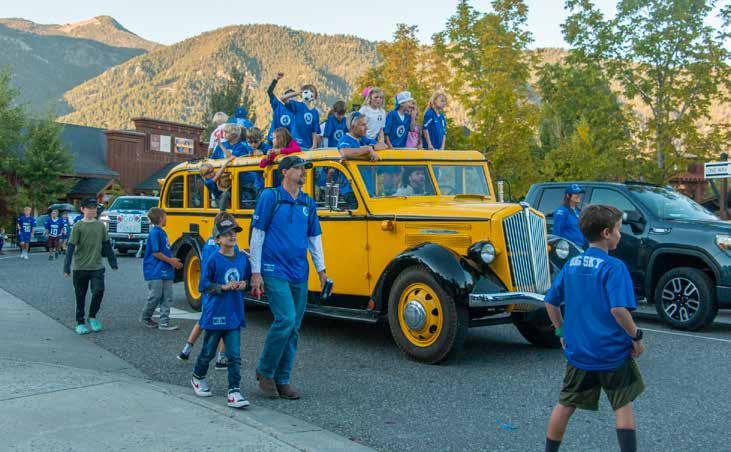 Covered in royal blue from head to toe, students from Ophir Elementary School piled into an oldschool Yellowstone National Park tour bus for the Lone Peak High School homecoming parade through Town Center on Oct. 5. PHOTO BY JULIA BARTON