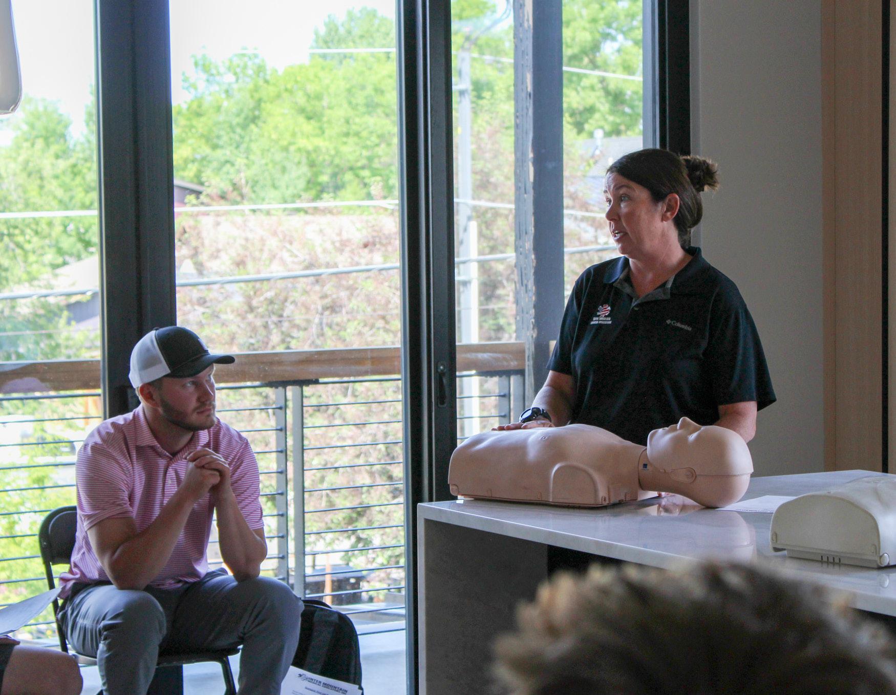 Instructor and company owner Katie Boyce leads a First Aid and CPR training course for Outlaw employees.