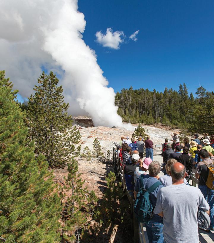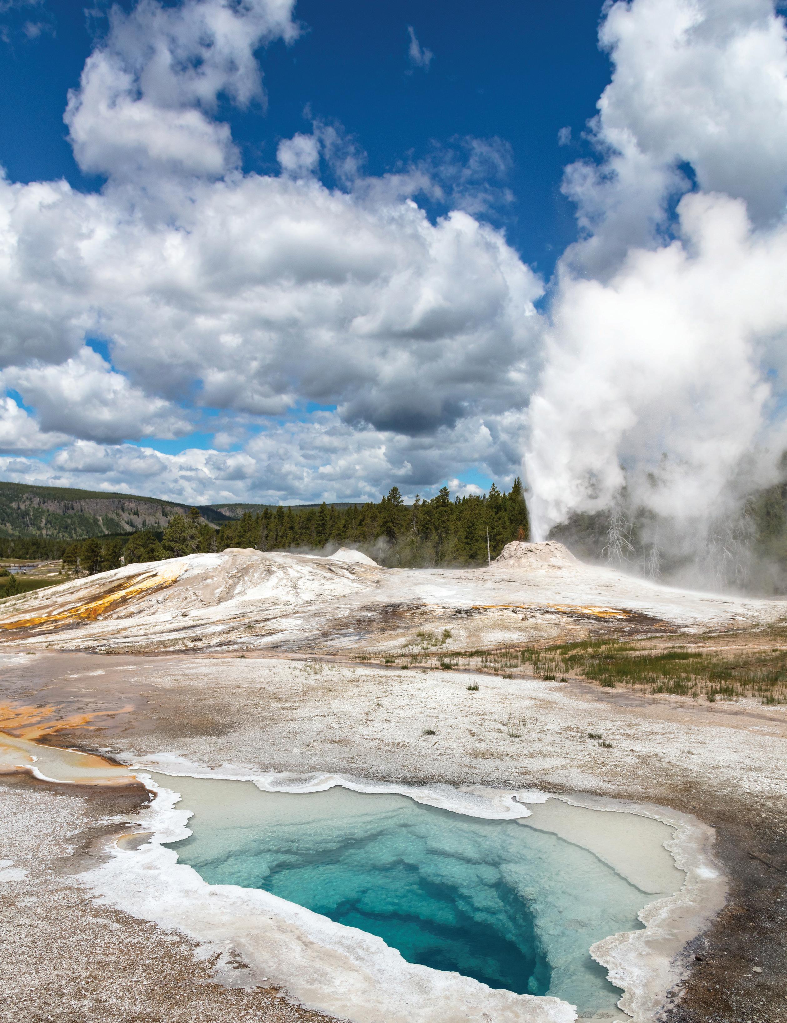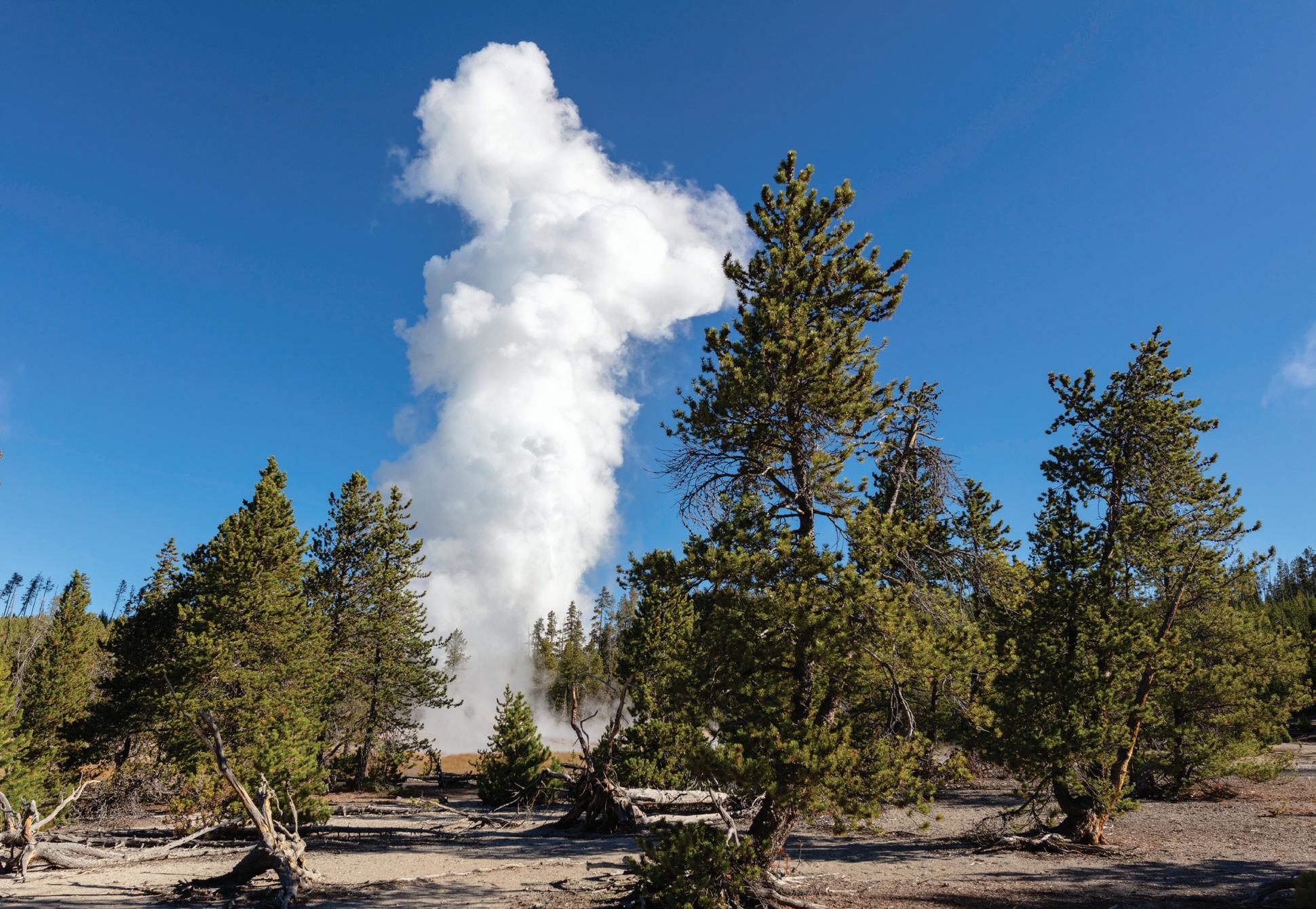 “We’d seen Old Faithful,” says Emfinger, a Fayetteville, Arkansasbased storm chaser and photojournalist who’d spent that day in Norris Geyser Basin specifically hoping to catch Steamboat in action. “We’d seen Grand, Fountain, and Riverside. We thought, those are all pretty cool. But then Steamboat goes off and you realize those geysers are nothing.” (Jennifer did get to witness most of Steamboat’s eruption, too; she heard the commotion from the parking lot and hurried back down the boardwalk.) In fact, Emfinger ranks it as one of the most incredible sights he’s ever witnessed. “I’ve been in tornadoes and major hurricanes,” he says. “I’ve been next to lava from an erupting volcano. I always count Steamboat in the top 10 of all those things.”