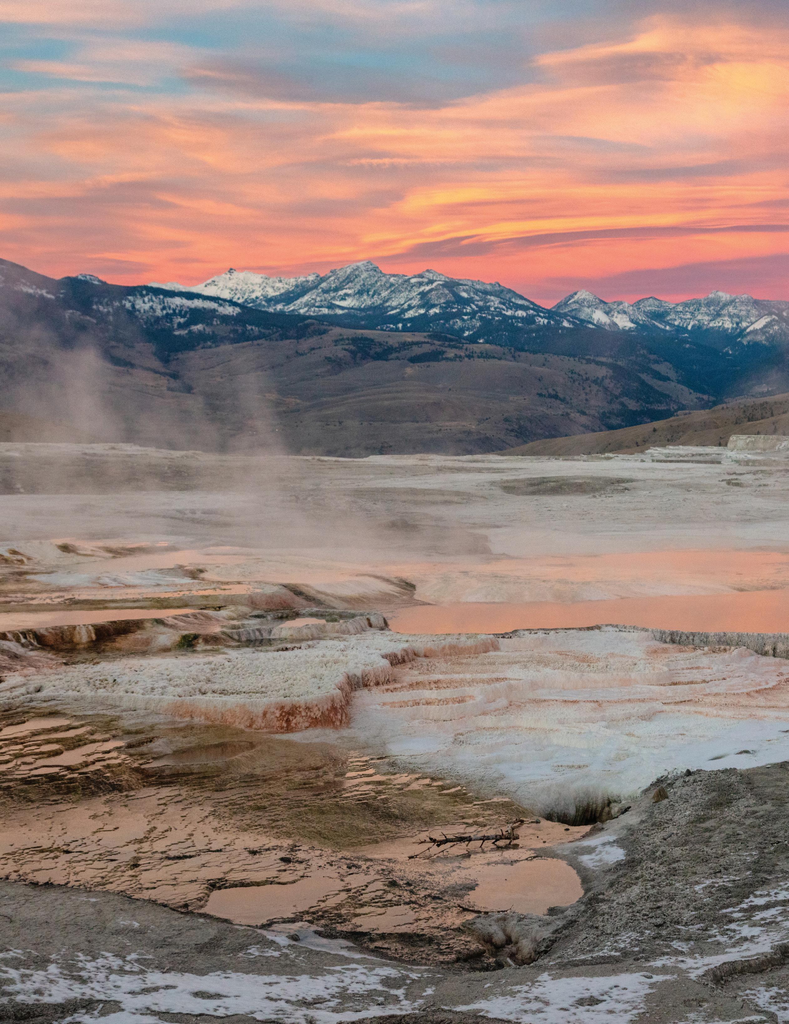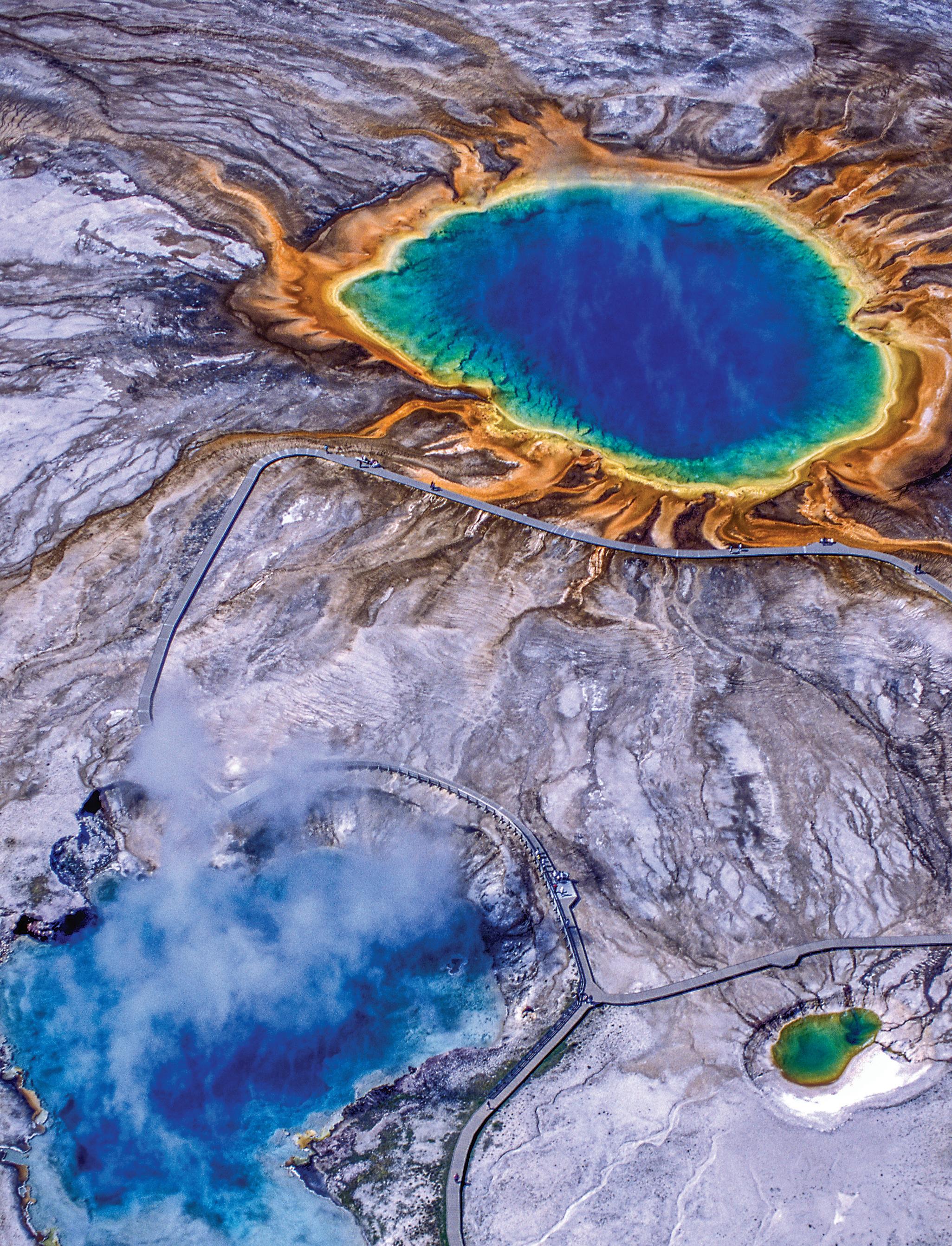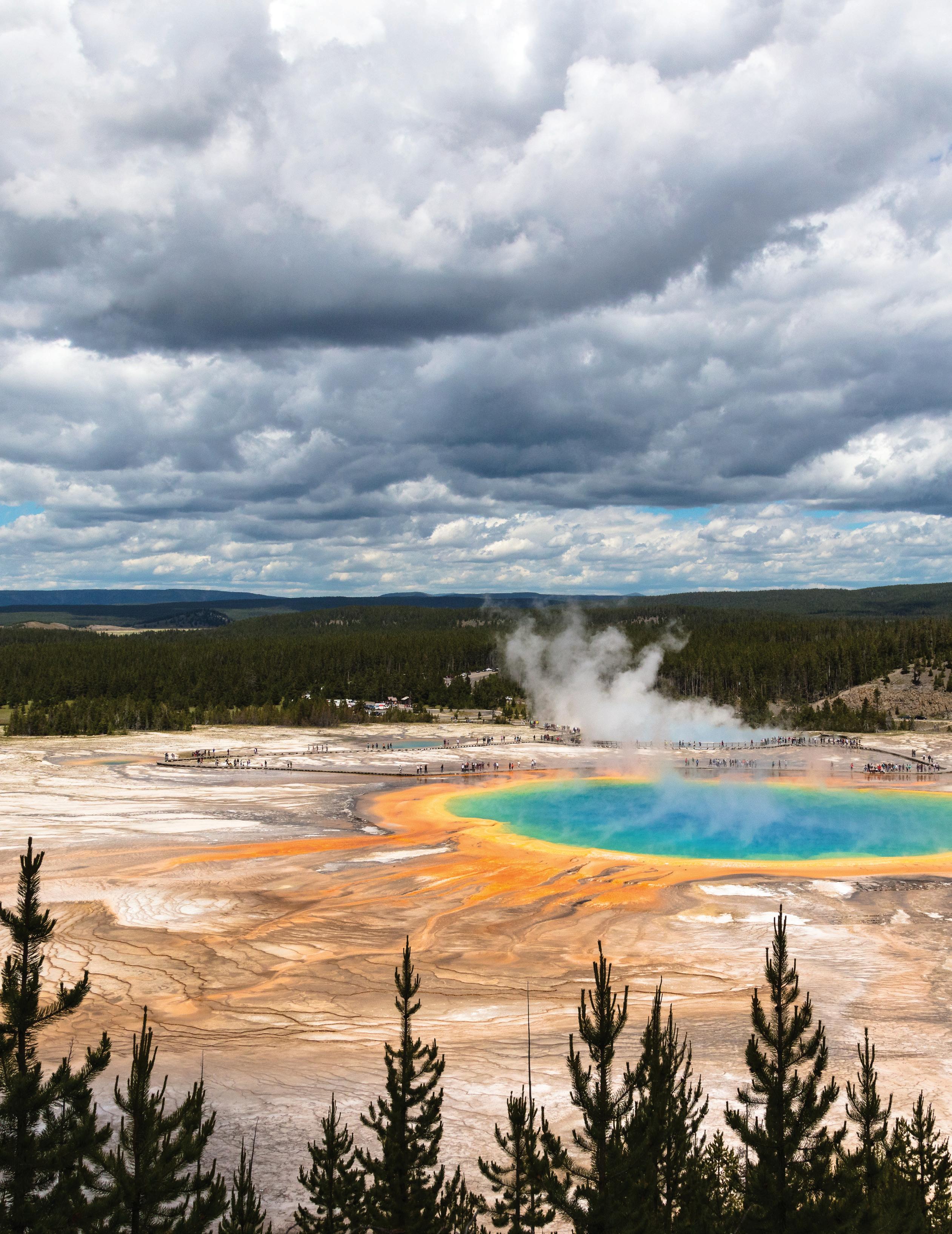 “We’d seen Old Faithful,” says Emfinger, a Fayetteville, Arkansasbased storm chaser and photojournalist who’d spent that day in Norris Geyser Basin specifically hoping to catch Steamboat in action. “We’d seen Grand, Fountain, and Riverside. We thought, those are all pretty cool. But then Steamboat goes off and you realize those geysers are nothing.” (Jennifer did get to witness most of Steamboat’s eruption, too; she heard the commotion from the parking lot and hurried back down the boardwalk.) In fact, Emfinger ranks it as one of the most incredible sights he’s ever witnessed. “I’ve been in tornadoes and major hurricanes,” he says. “I’ve been next to lava from an erupting volcano. I always count Steamboat in the top 10 of all those things.”