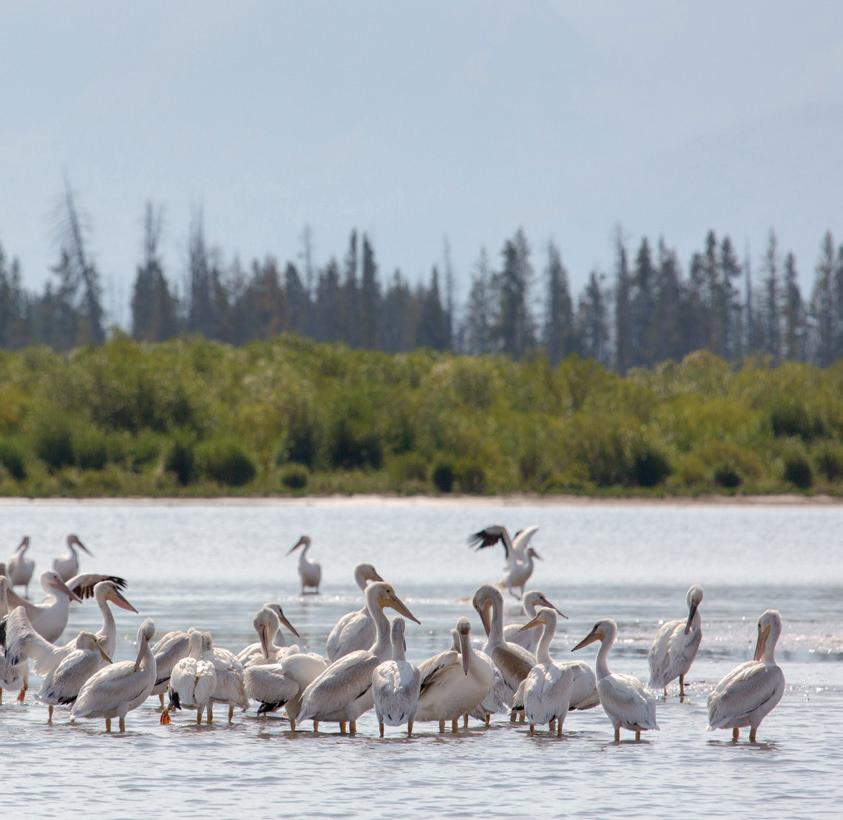 While pelicans are more commonly associated with coastal regions, Yellowstone’s American white pelicans are a striking sight in the park’s freshwater lakes and slow-moving rivers. With a wingspan of up to nine feet, these large birds are masterful fishers, often working in groups to herd fish into shallow waters before scooping them up in their oversized bills.
