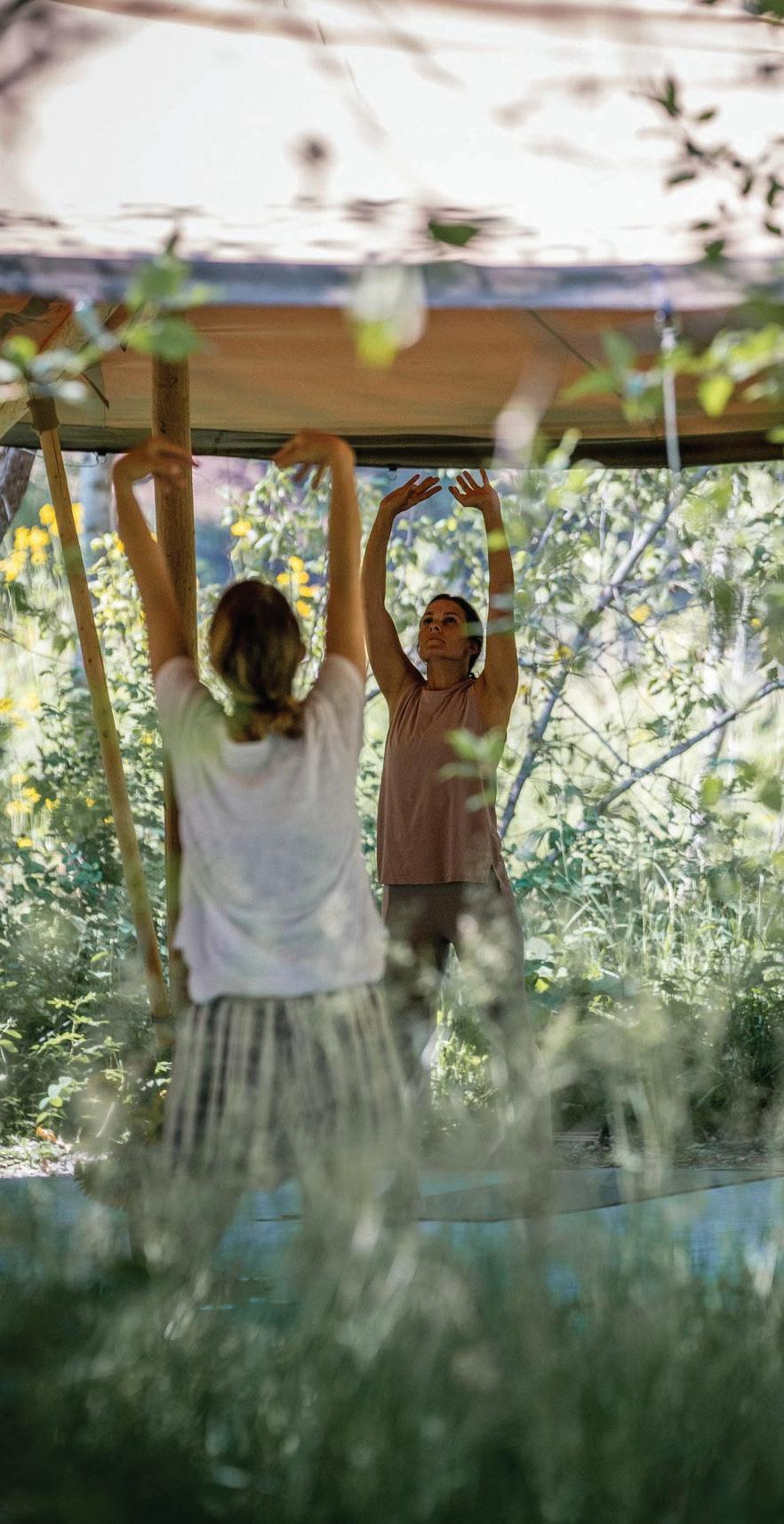 “The outdoor spa offers yoga, massages in a heated tipi, and a woodfired sauna. The Yoga Shala is open on all sides, bringing your practice into nature,” Rayner shared. The tipi sides are opened during warm, sunny days and closed on colder ones while the heated floors allow for a warm practice year-round. The Wandering Sauna provides a space for gathering and is located near the creek.