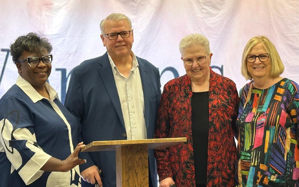 MAUC president Gary Thurber shows support for Mid-America Union’s women’s ministries leaders, present and past: (l-r) Donna Brown, Evelyn Glass, Nancy Buxton. For more information visit midamericaadventist. org/womens-ministries or Facebook: Mid-America Women’s Ministries