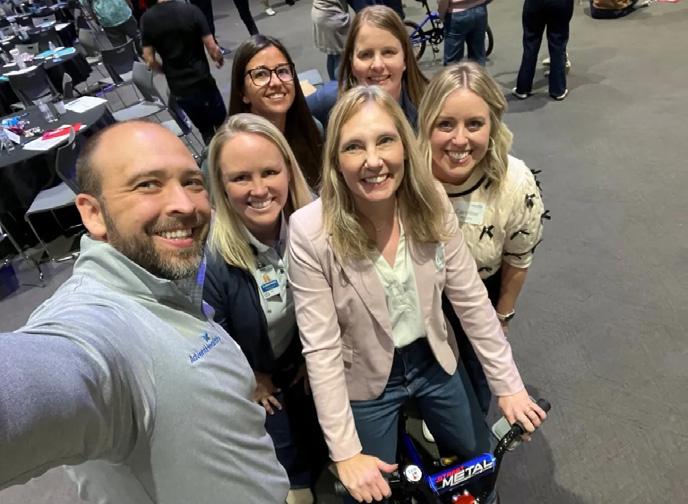 Brendan Johnson, president and CEO of AdventHealth Ottawa, and a team of AdventHealth leaders complete the bike building challenge for the community.
