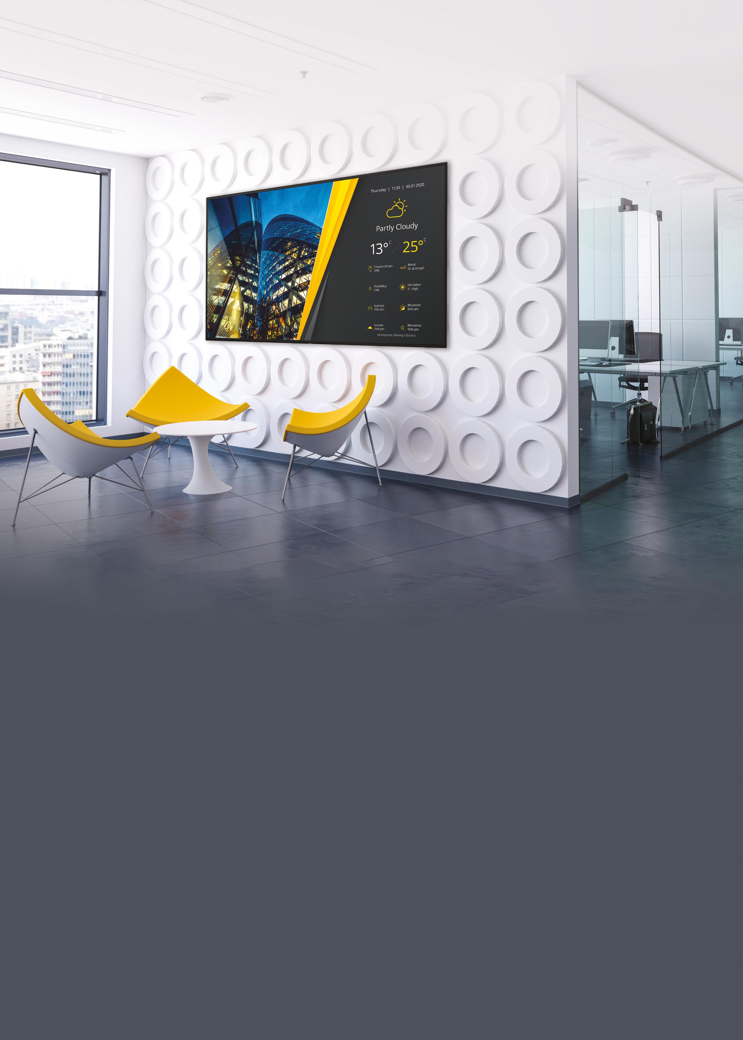 Make sure everyone sees the picture clearly with BRAVIA Professional Displays BZ40L & BZ53L Series. Our Deep Black Non-Glare technology minimises reflections whilst ensuring a high-contrast premium picture, even in brightly lit areas. Available in 4 sizes ranging from 55” to 98” and packed with features aimed to make installation and management easier than ever, they are the ideal choice for meeting rooms, classrooms, public spaces and retail outlets alike.