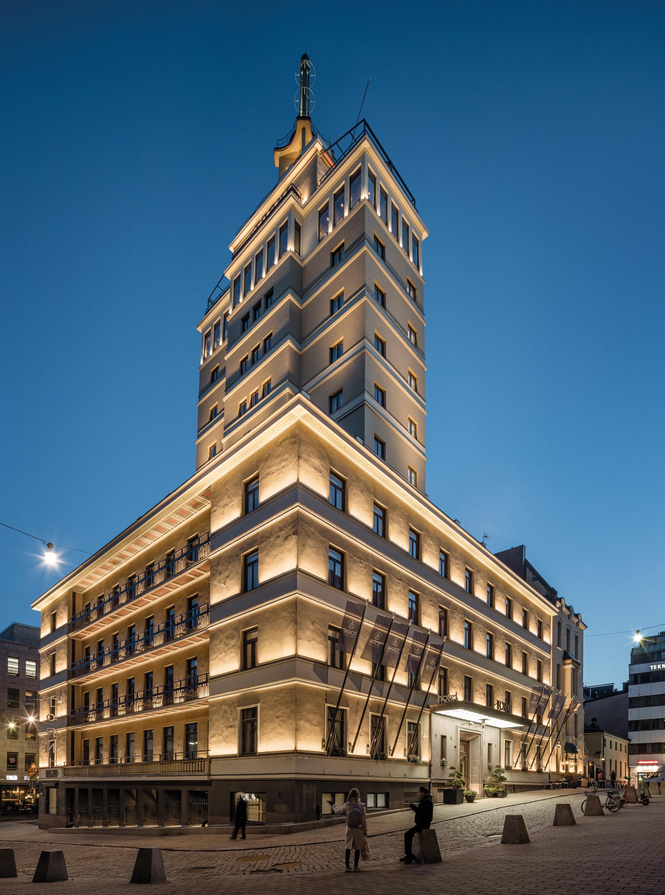 The first part of the Torni, which means tower in Finnish, was designed by architects Jung and Jung, in the 1980s, later joined by the Kyllikki side, a 1903 residential building. It stands today as one of the most recognisable landmarks in Helsinki.