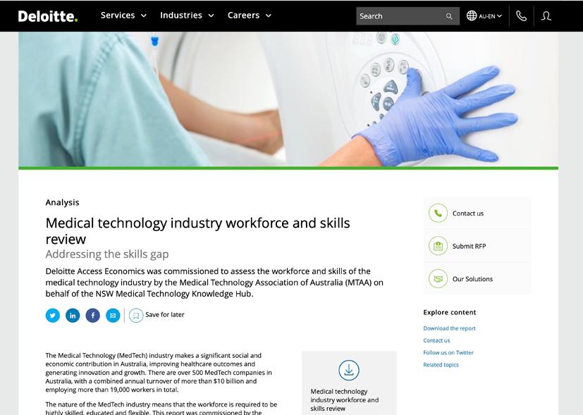 Healthcare Outlook Issue 2 | 13 MEDICAL TECHNOLOGY ASSOCIATION OF AUSTRALIA (MTAA) Tel: (02) 9900 0600 www.mtaa.org.au/contact-us