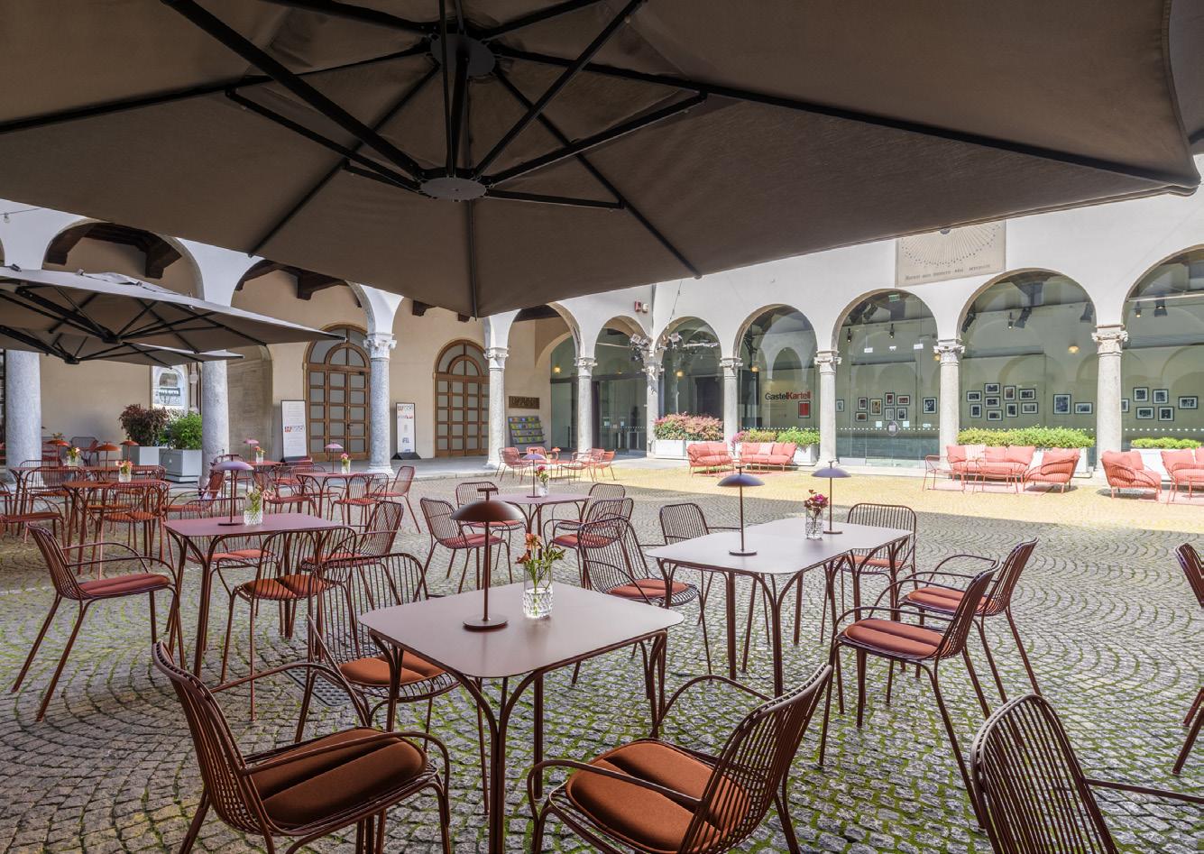 Next to Teatro Grassi is the charming Chiostro Nina Vinchi which was returned to its original splendour thanks to a restoration project in 2009. The works uncovered Fifteenthcentury frescoes and capitals attributed directly to Bramante and Leonardo da Vinci, rendering it a unique destination for visitors to Milan. Visited by more than 400,000 people a year, the Chiostro is a true meeting place for citizens and tourists. It hosts presentations, talks, and cultural activities, while the Piccolo Café & Restaurant welcomes visitors from breakfast to dinner, offering an oasis of tranquillity in the hustle and bustle of the city.