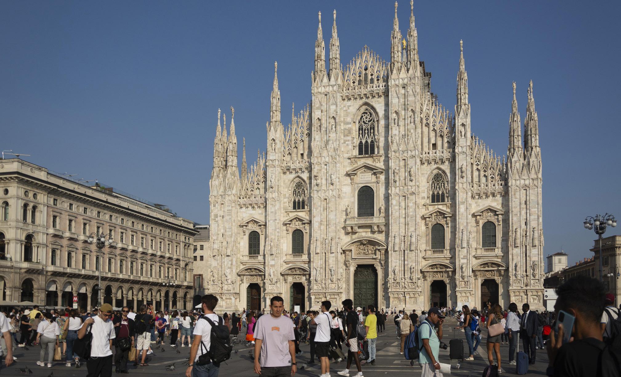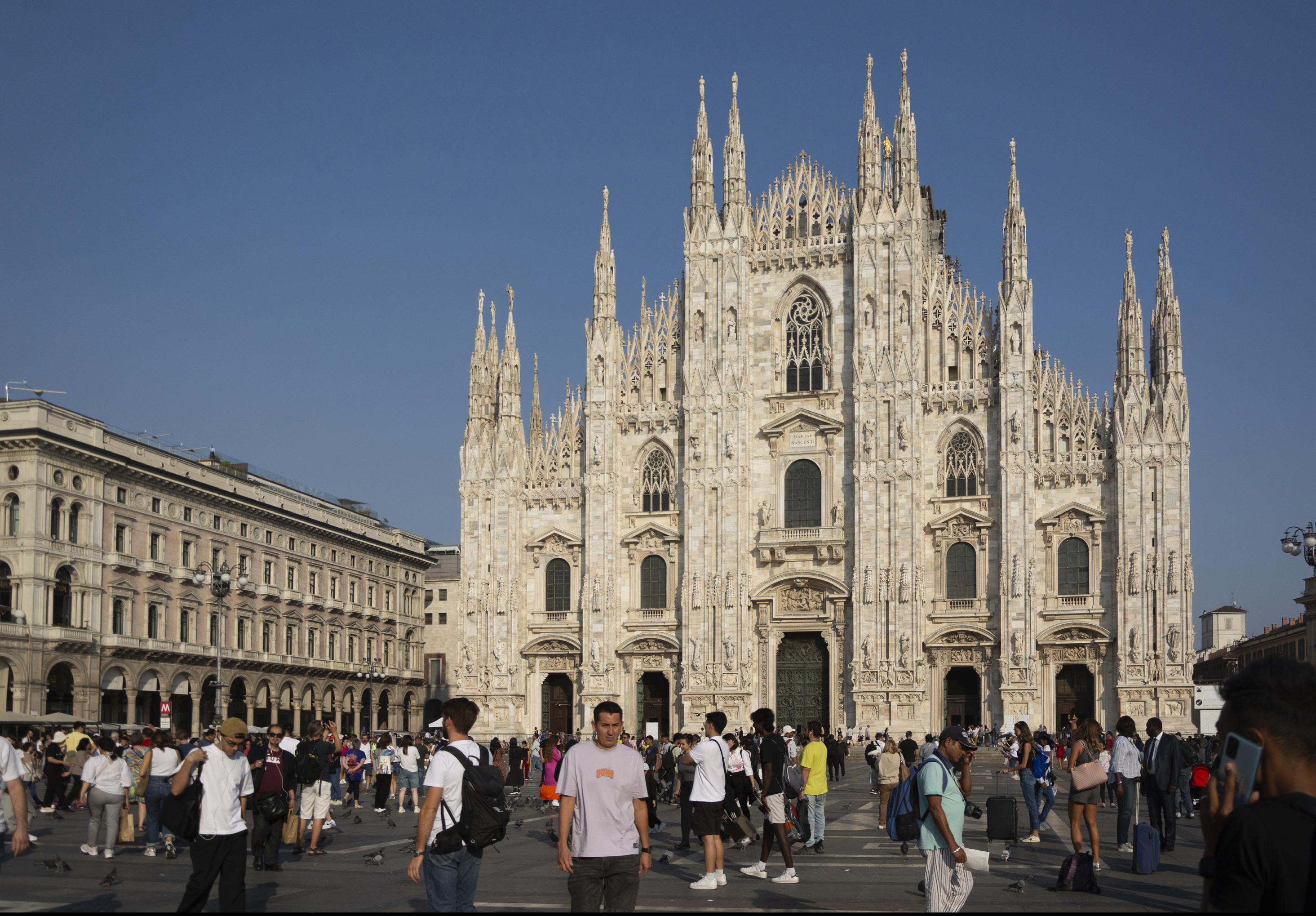 Italy’s largest church is famed for its pink and white marble exterior and golden Madonnina, a statue of the Virgin Mary, that sits atop its highest spire.