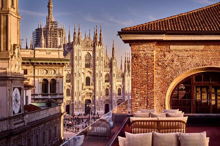 partnership with SHG, includes Café Kitsuné, a chic Japanese-French café; Giardino Cordusio, an Italian cocktail bar set in the hotel’s inner courtyard; SACHI, a Japanese restaurant with an Omakase counter and terrace overlooking the Duomo; and Isola Restaurant, serving southern Italian cuisine with panoramic views of Piazza Mercanti and the cathedral. A wellness area with pool and gym completes the experience. A new icon of luxury hospitality where Milanese heritage meets inspired modern living.