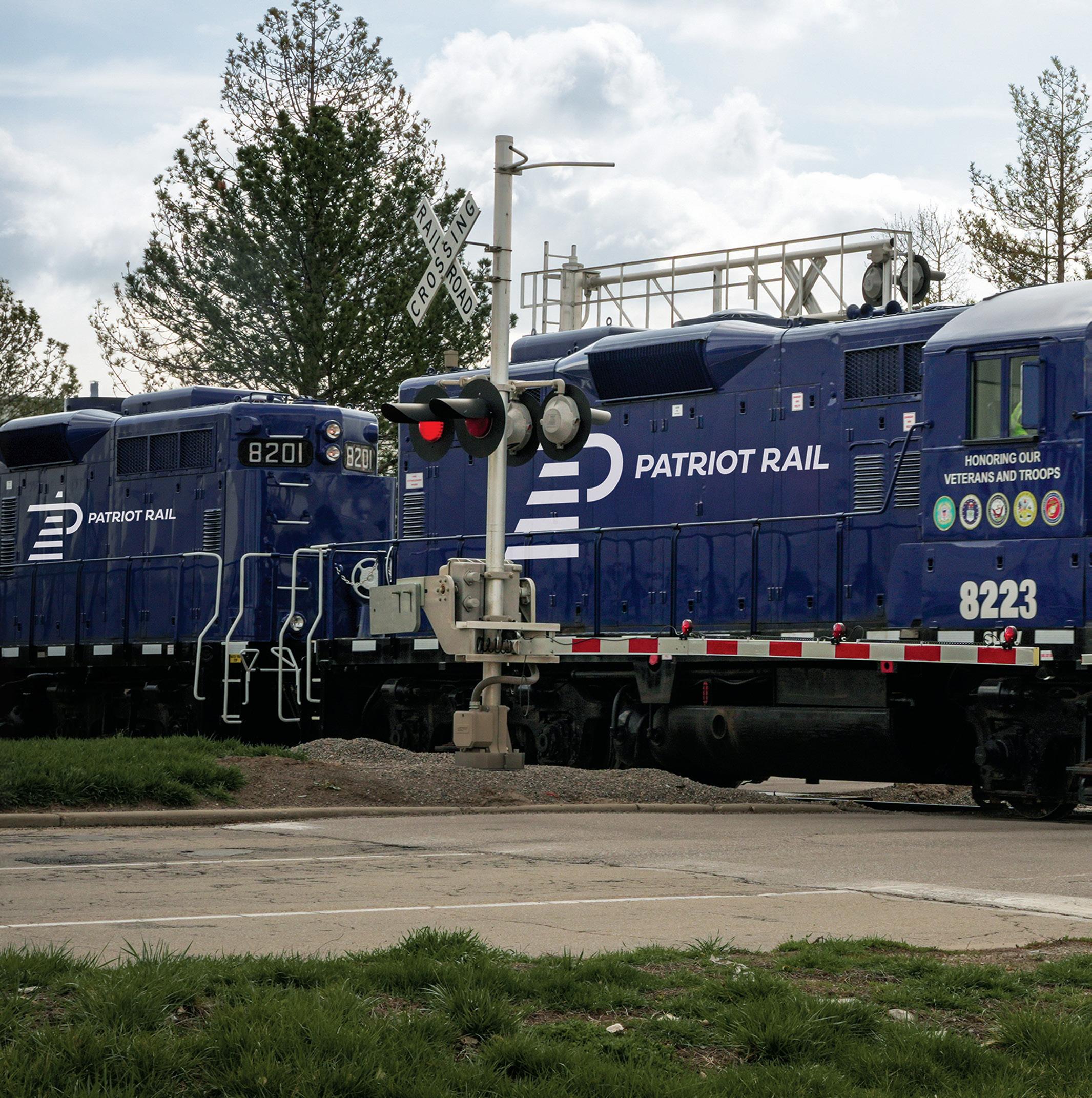 resembling railroad ties, symbolizes steppingstones to the future and reflects the pivotal first mile and final mile services that Patriot’s short lines provide.