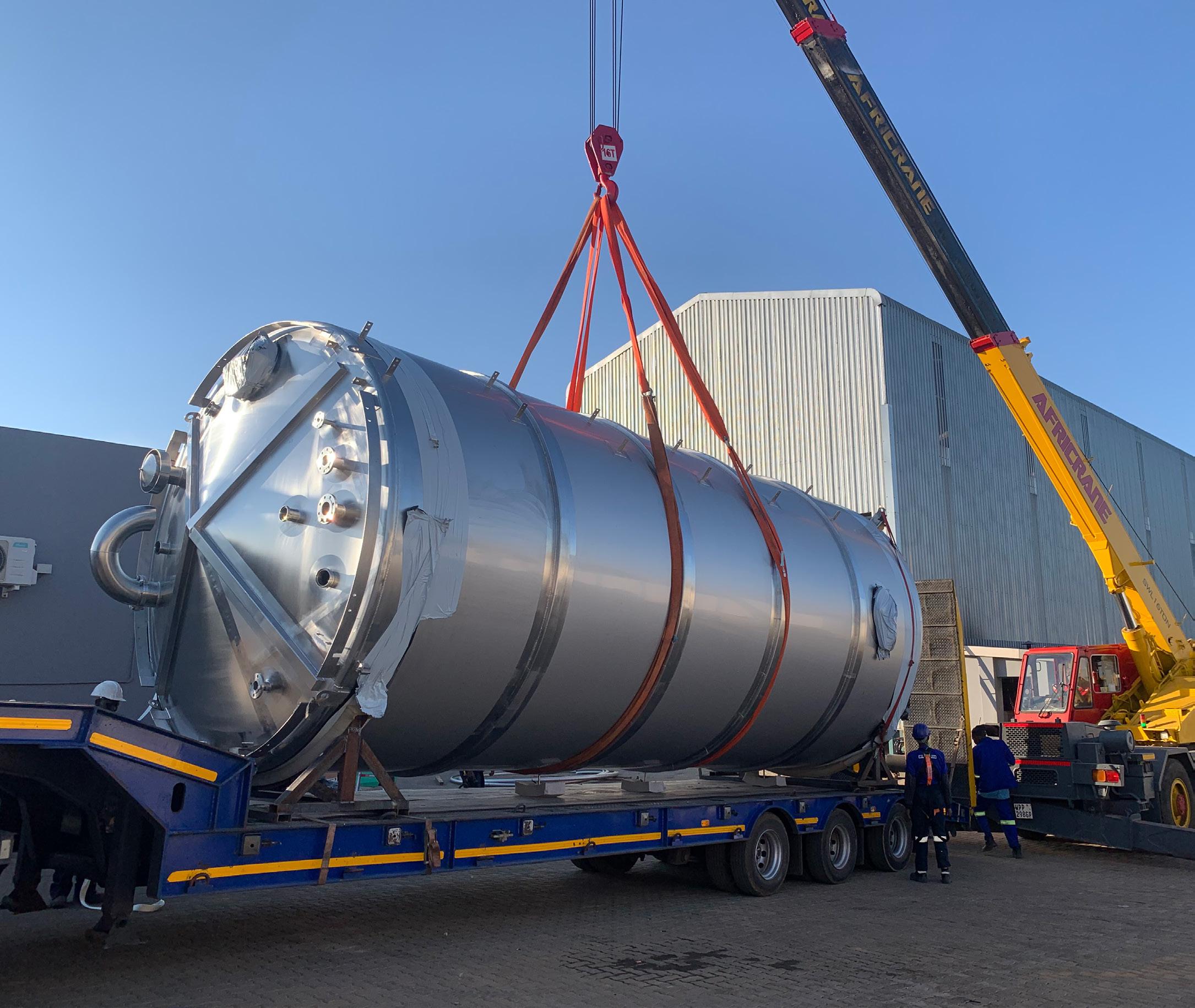 Whilst specialised tank fabrication remains at the core of what we do, our offering extends well beyond that. We provide complete turnkey process solutions that include pipework, valves, pumps, instrumentation, cooling systems, heating systems, straining systems, walkways, electrical controls, and an inline illing system. Additionally, we offer a full logistics service throughout sub-Saharan Africa as well as on-site installation and commissioning. We are conveniently located in Gauteng, South Africa, only 20 minutes east of OR Tambo International Airport in Johannesburg. We are wellequipped to load and deliver to all countries in subSaharan Africa.