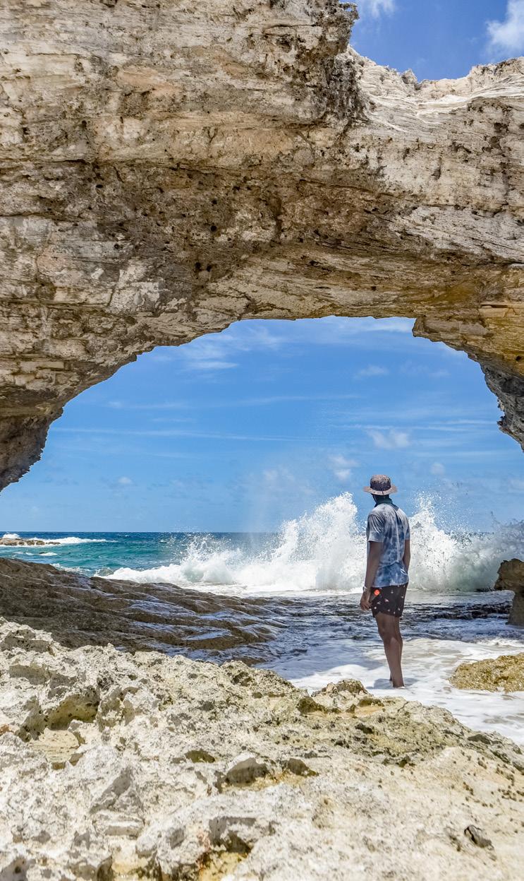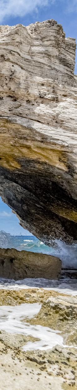 The multicultural origins of Middle Caicos are evident in other place names, such as Mudjin Harbour – a variation of the area’s original name of ‘Bermudian Harbour’. This section of coastline offers dramatic pano ramic views, with limestone cliffs and swelling seas.