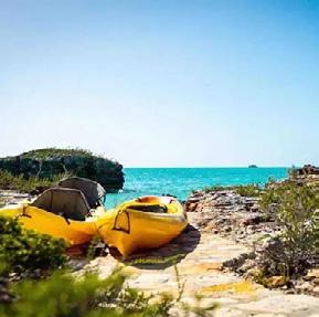 A playground for adventure, Middle Caicos offers hiking, biking, and sea fishing in hobie tandem kayaks.