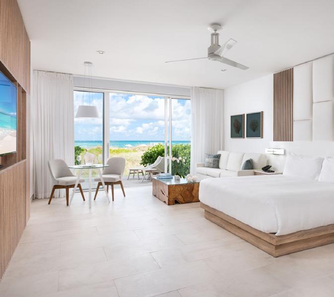 JC: There are several factors that make Wymara Resort and Villas unique in our destination. Our aesthetic is modern and a departure from the colonial architecture that is prevalent among the other offerings on the island. Our location is also unique. Grace Bay Beach has two arches, the East and the West arch. The East arch is where most of the hotels are located, including two very large ones, and as a result, that arch is high density with a lot of foot traffic. Wymara is located in the West arch, which only has two other small hotels so it is very low density. Even when the hotel is at full capacity, there is plenty of space for guests to spread out and have some peace and quiet by the sea.