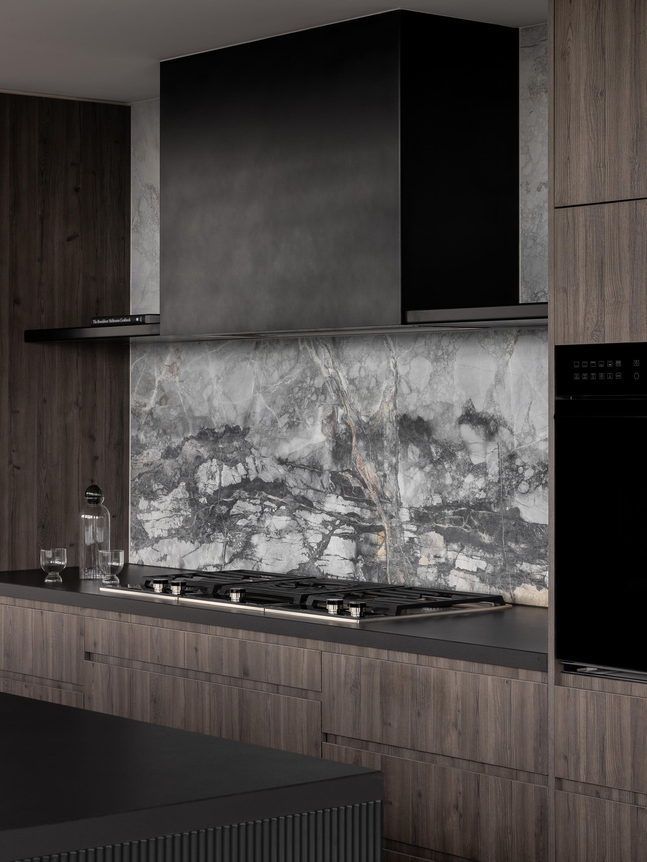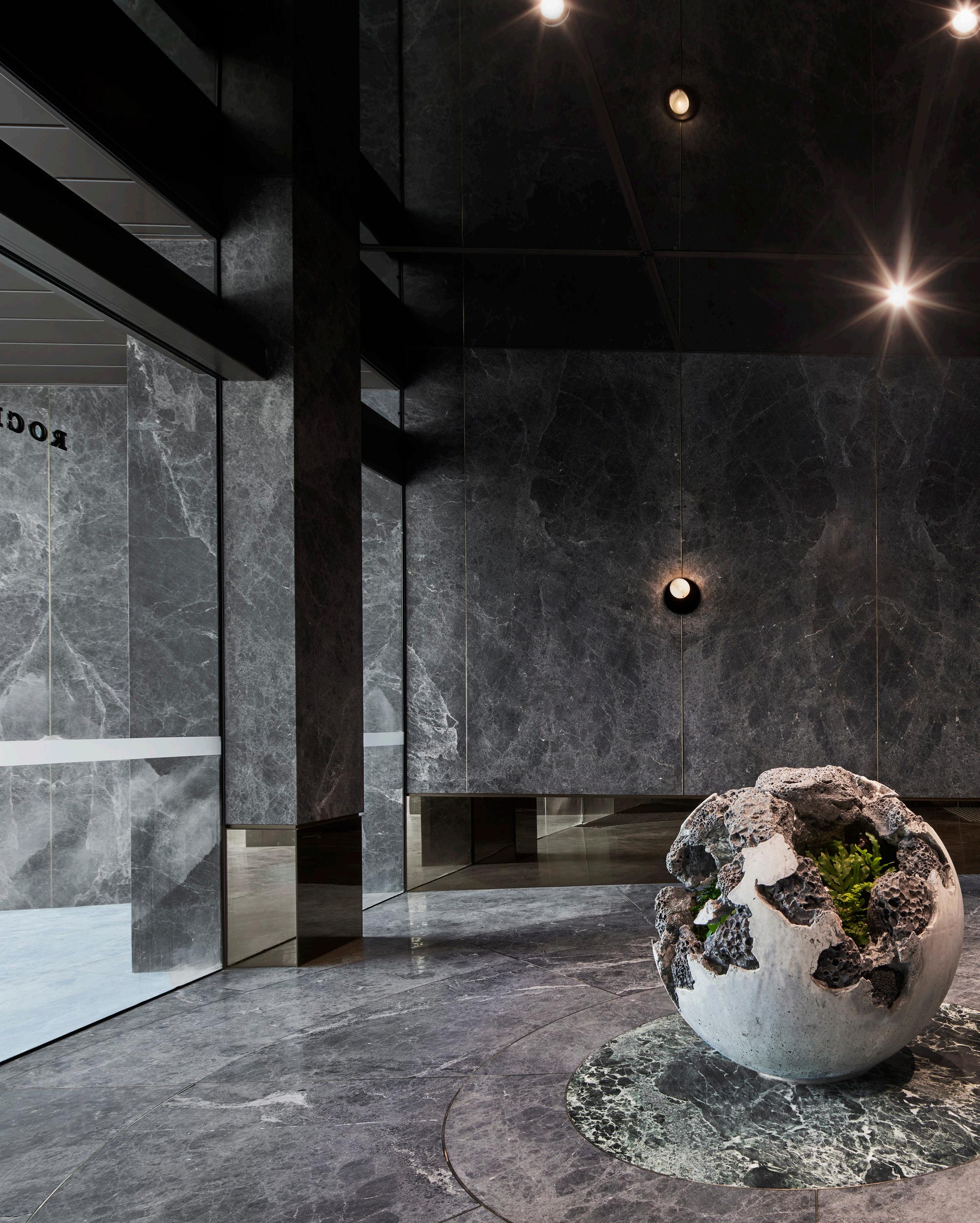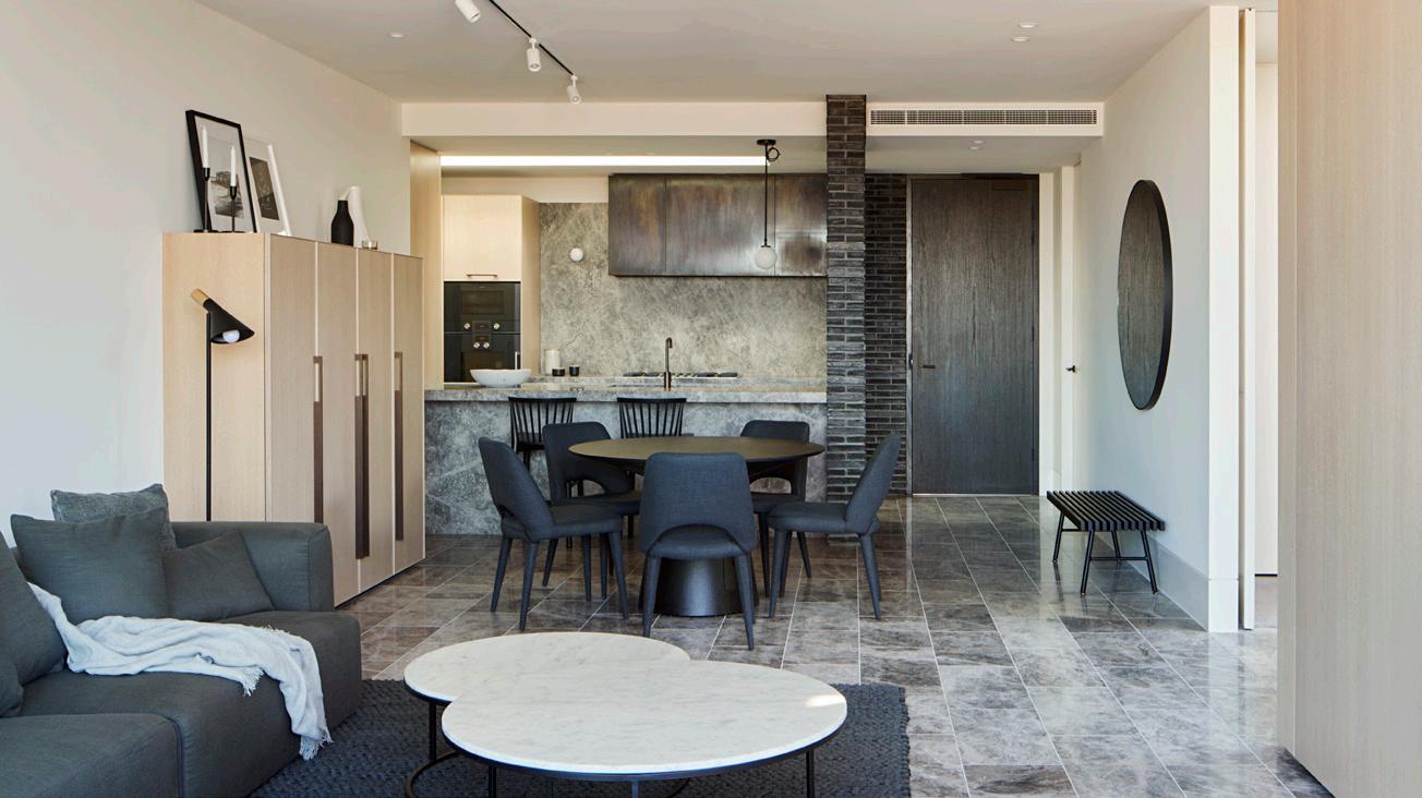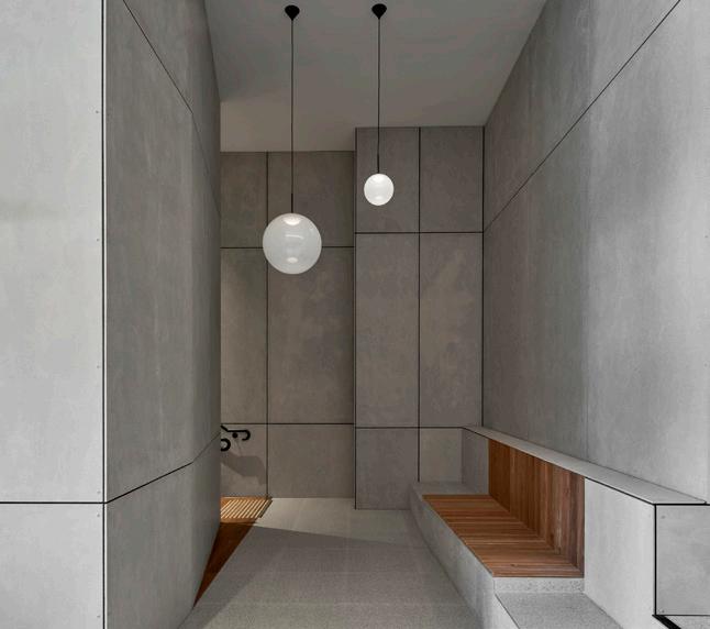 “The internals are also minimalist but not stark. All the finishes are exotic, with stone, timber, and polished plaster, to name a few. The residents also enjoy large communal shared areas, which have abundant light and water features to balance the sheer walls of the monolithic GRC,” he explains.