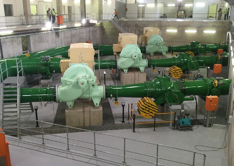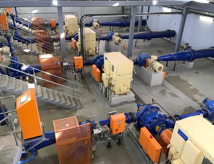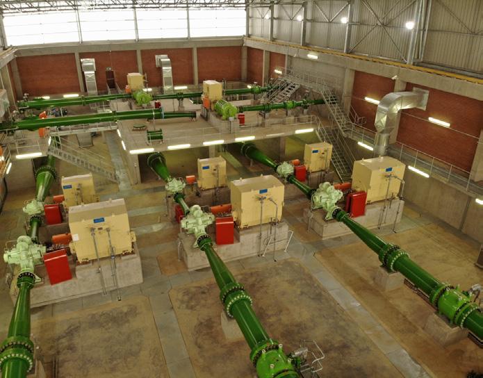• Metsi Projects is currently in the process of completing a large project for Lepelle Northern Water in the Limpopo Province. The project includes the supply, installation and commissioning of a mechanical plant to replace 15 high-lift pump sets in four pump stations, including piping, valves, cranes and an ancillary plant. The variable speed pump sets deliver up to 0.347m3/s at total heads of up to 330m, with a total installed motor power of 23.1MW. The contract also includes the complete refurbishment of 10 rapid gravity sand filters, valves, actuators and chemical dosing equipment for the 60Ml/day Ebenezer water treatment plant.