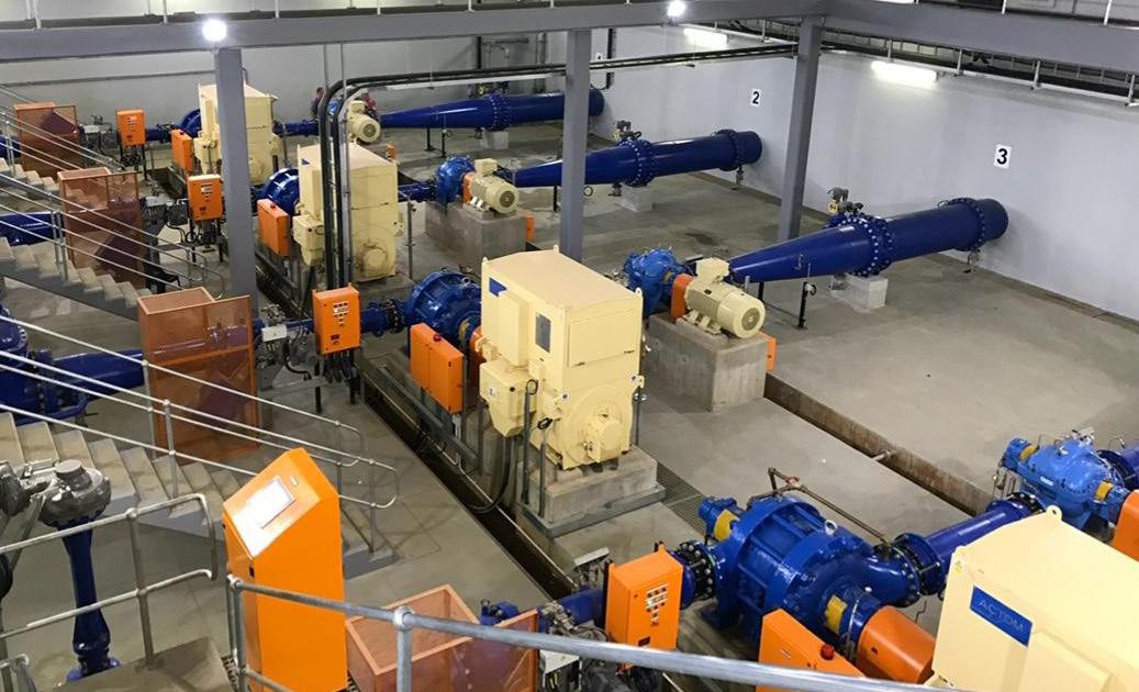 Contract Phase 2B & 2B+, Flag Boshielo Dam to Pruissen Reservoir, bulk water transfer scheme. The mechanical works will comprise three pump stations, each housing three variable speed pump sets of 3.5MW. Each pump station will transfer water at a flow rate of 2.1m3/sec at maximum duty and at a total head of about 250m, with a total installed motor power of 31.5MW.