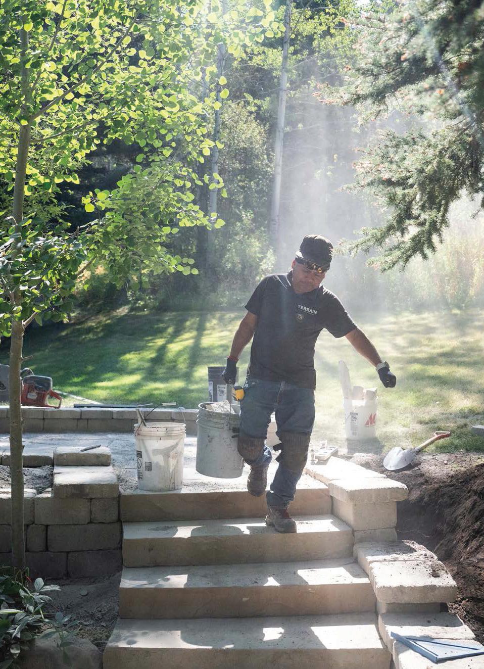 FACING PAGE: FROM CONCEPT TO COMPLETION, CUSTOM DECK, HOT TUB, COLD PLUNGE, SOD, AND PLANT INSTALLATION BY THE TERRAIN TEAM.