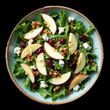 2. In a large bowl, combine greens, apples, walnuts, goat cheese, and cranberries.