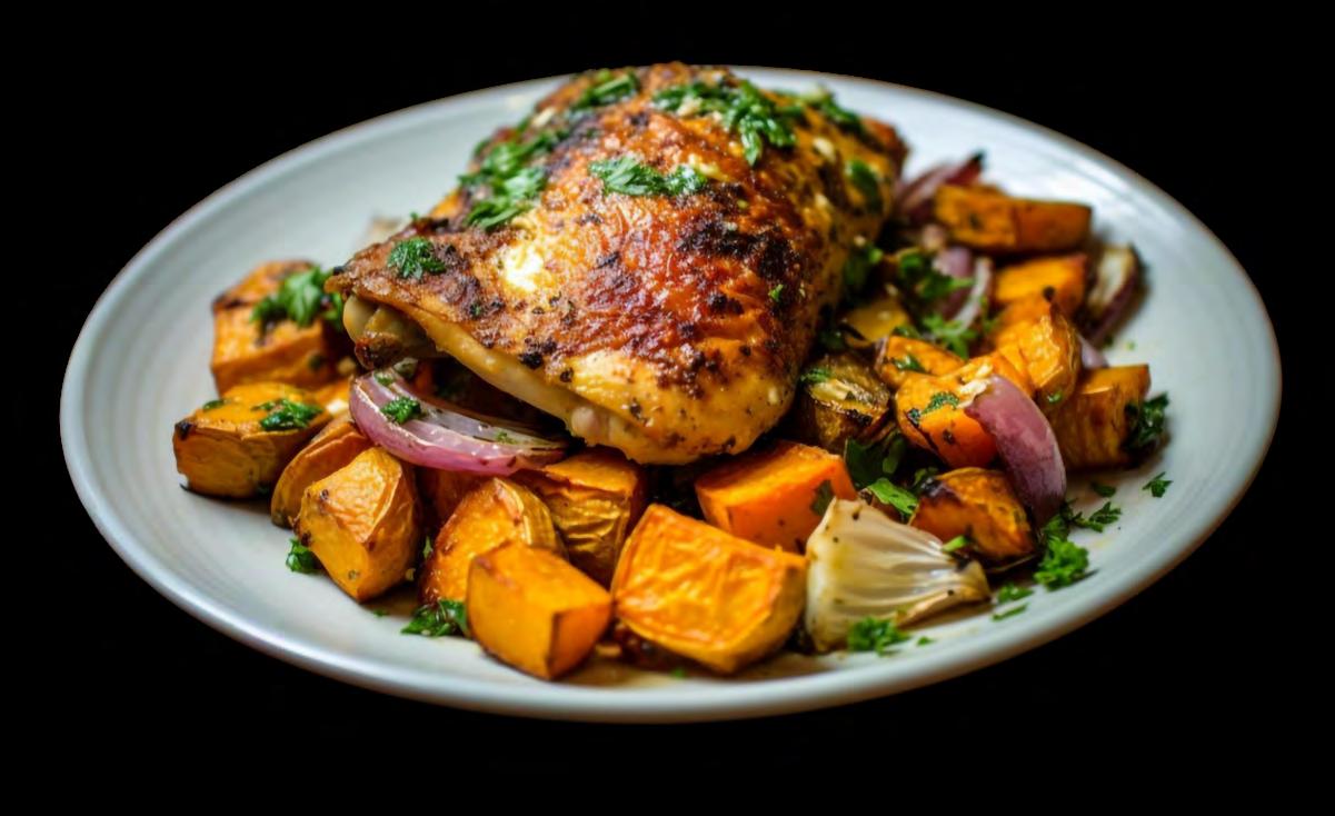 4. Roast 35–40 minutes, until chicken reaches 165°F and potatoes are tender.