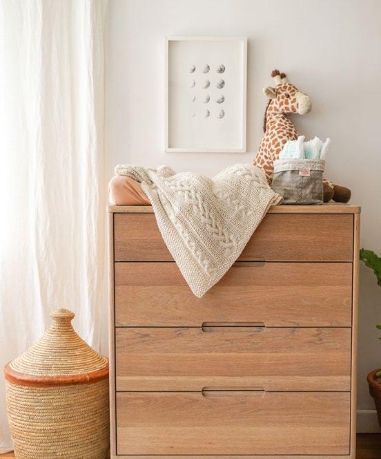 Pictured here in oak and a natural oil finish, Pedersen + Lennard’s Compactum is designed to become a useful chest of drawers beyond changing nappies — ideal for when you want to redesign the space as your wee one grows. From the saffron colour scheme capturing the iconic hues of an African sunset to the animal-inspired accents, this nursery is sure to inspire endless fun for you and your little one.
