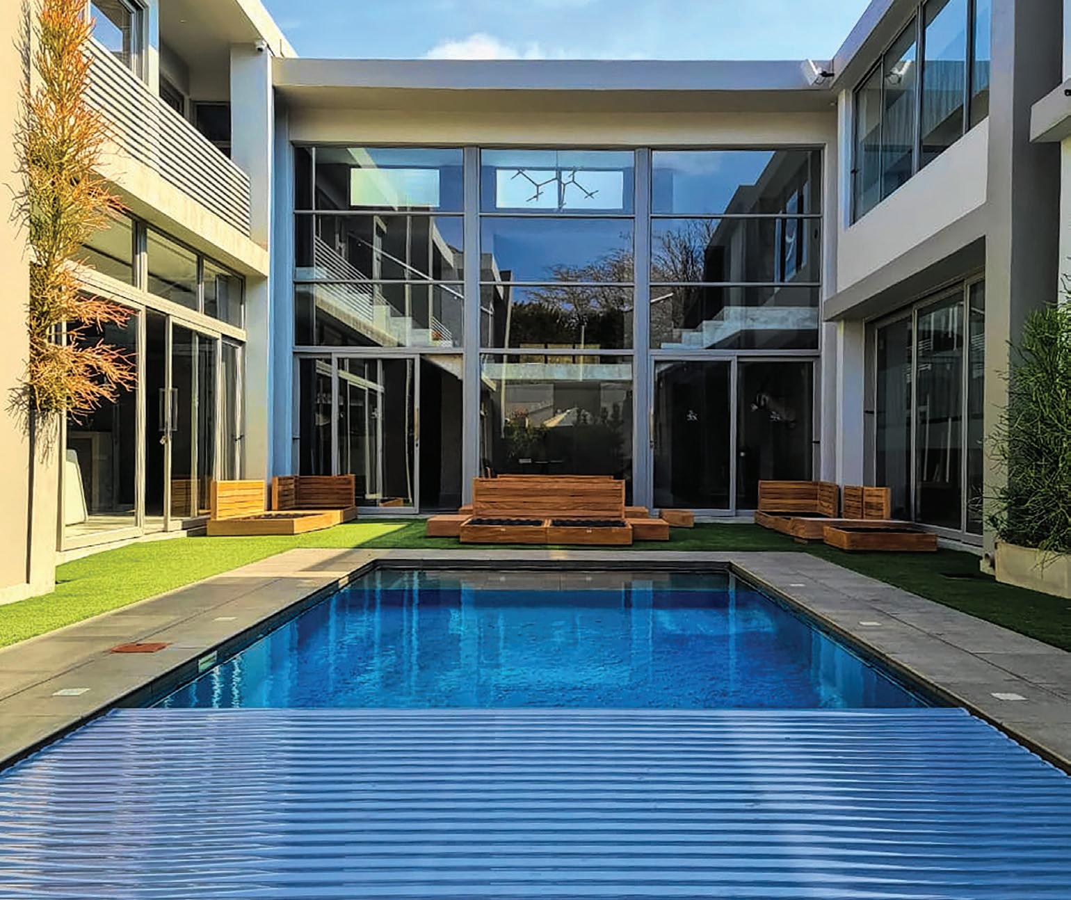 The classical garden style has crawled back into the contemporary landscape space, with a yearning for whimsical features and delightful blooms, welcoming nostalgia back into our lives. This garden at a Georgian-style home in Tokai was very sad after the drought, so during lockdown our client decided to start with a fresh new design. The wonderful journey from the entrance introduces you to a loose meadow verge, with dainty flowers close to the ground bringing your attention to beautiful herringbone paving. As you open the front door there is a lovely surprise avenue of trees enticing you further; travel deeper into the garden and you will discover a delightful pool area and welcoming main entrance. The pool was given a fresh new Cape grey fibre lining, custom cut stone coping, and stone grey cobble paving laid in a herringbone pattern. We gave the feature wall a moulding detail to match the house and reshaped it to have more relevance to the design — in time there will be a hedge beautifully framing this from behind. A noticeable difference from the traditional, old-fashioned-style gardens is the limit to two to three colours and a sharp contrast between loose planting and neat, orderly lines. Whether this is achieved by using a strong gravel strip with steel edging, wide granite tile platforms, or ‘klompie’ edging — we like a sense of order and ‘tidiness’ in our outdoor spaces, especially living in smaller homes where these areas become an extension of our living space.