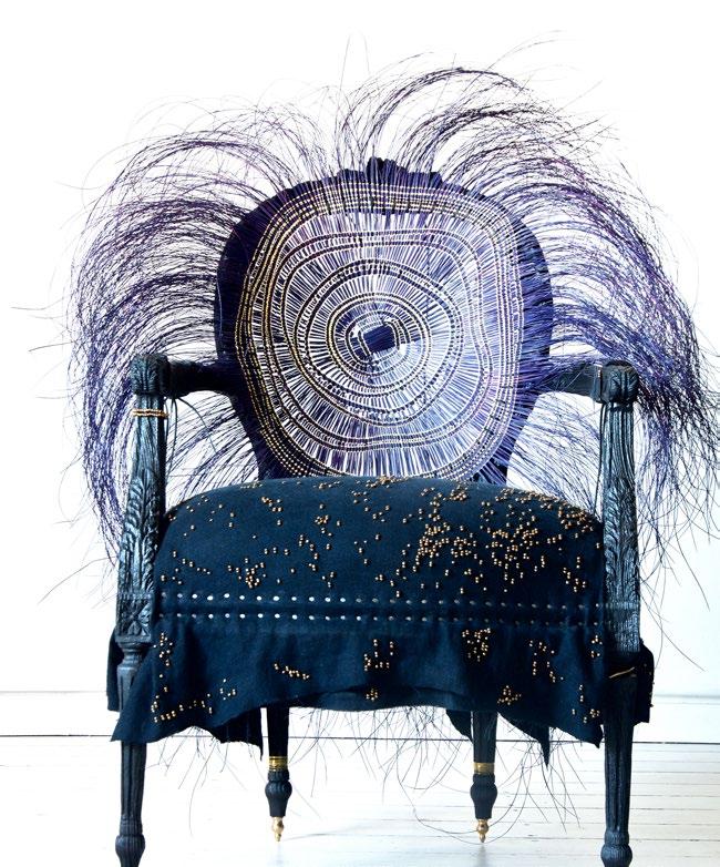 Afropunk is my own art project where I ‘decolonise’ an antique frame. I love sandblasting and burning the frame, deconstructing the fabric, and also collaborating with other artists on these chairs. We made one in 2017 with artist Atang Tshikare called the Leifo chair. They are meant to be artworks more than furniture.