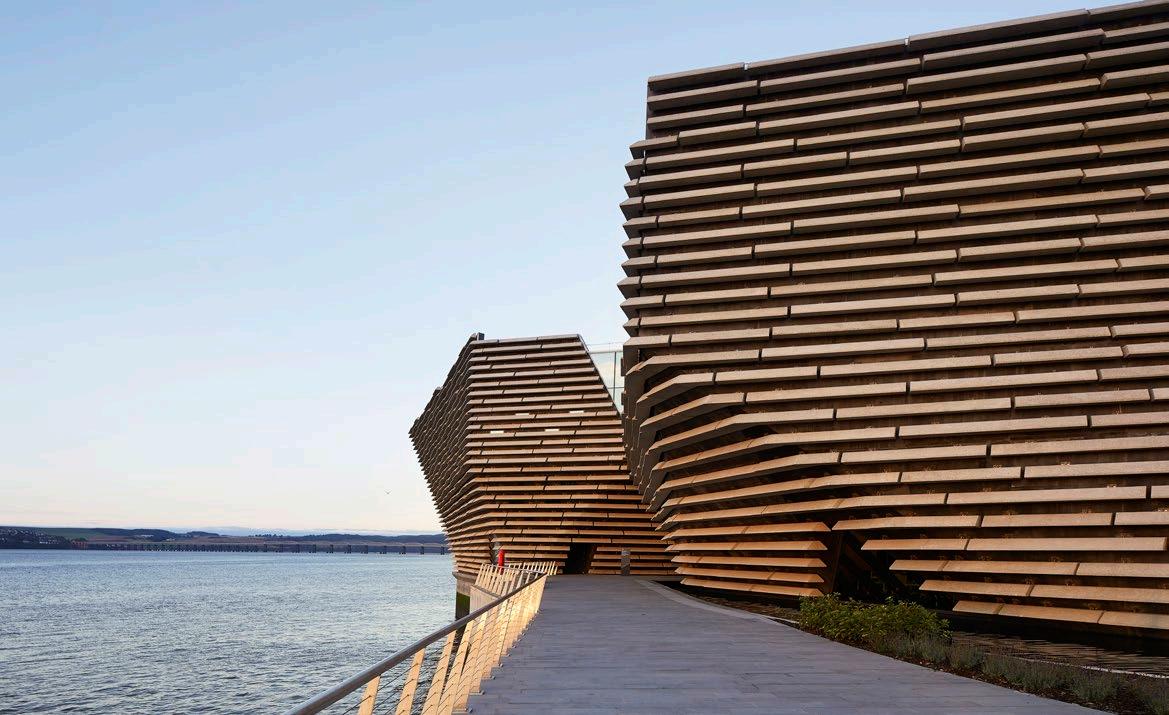 At Scotland’s design museum, the V&A Dundee, renowned Japanese architect Kengo Kuma used clay bricks to create a subtle, textured façade reminiscent of a cliff face, which harmoniously complements the sweeping building’s natural surroundings. Made from thousands of cast-glass panels resembling the layers of sedimentary rock found along the nearby River Tay, the building appears to be carved out of the earth.