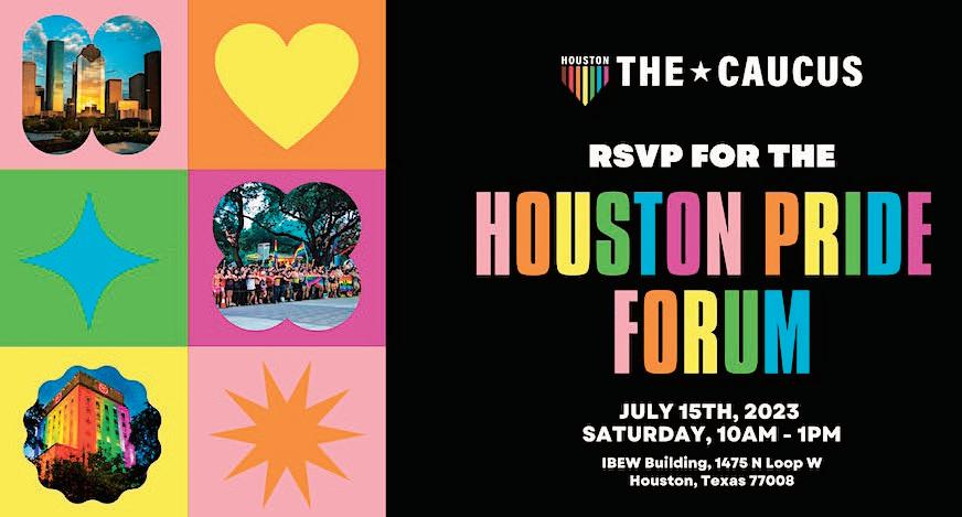 JULY ’23 HOUSTON'S LGBTQ MAGAZINE OUR th YEAR LUCIO NIETO FINDS HEALING AND COMMUNITY ON THE ISLAND Pg.42 SEA CHANGE TIKTOK GOES LOCAL CREATORS SPOTLIGHT HOUSTON’S LGBTQ COMMUNITY Pg.56 QUEER in GALVESTON HOUSTON PRIDE 2023