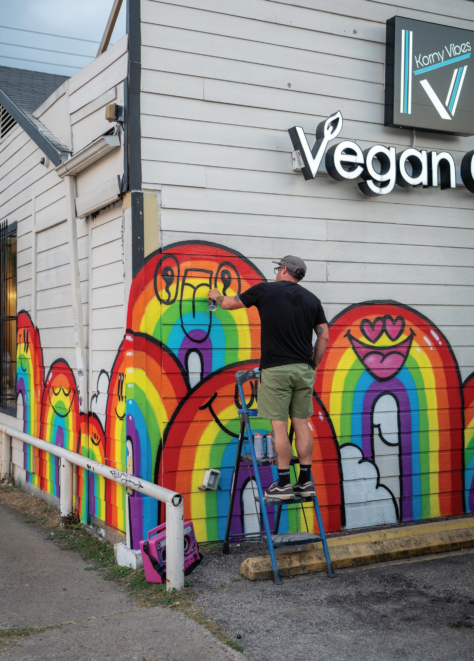 On our November cover, we feature a ommunity news story by David Clarke and Brandon Wolf, with exclusive photos by Nora Dayton. They examine the removal of Houston’s rainbow crosswalk at Taft and Westheimer following Governor Greg Abbott’s statewide order banning “non-standardized” crosswalks. City and county leaders condemned the move as censorship and an attack on local control. In response, artist Nicky Davis brought the vivid rainbow colors back to Montrose with a new mural at Korny Vibes Vegan Café—an act of resistance and joy.