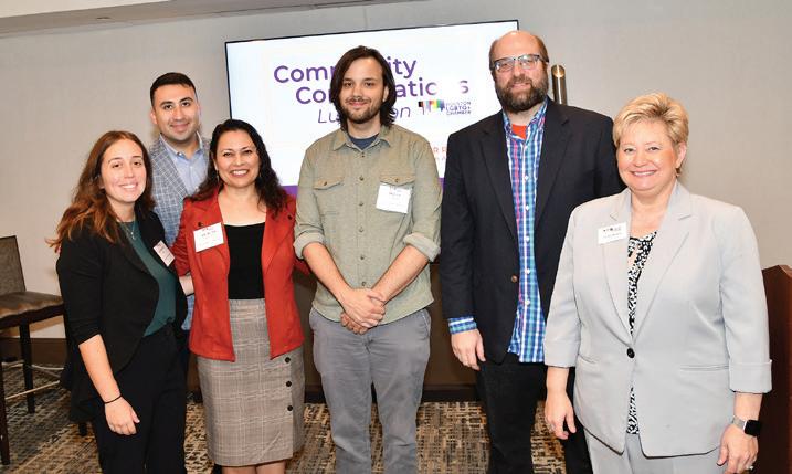 On October 9, 2025, the Greater Houston LGBTQ+ Chamber held Chamber Community Conversations with members of the Kinder Institute for Urban Research. Pictured are Katherine Perez, Stephen Miranda, Ruth López Turley, Dylan Simburger, Dan Potter, and Tammi Wallace