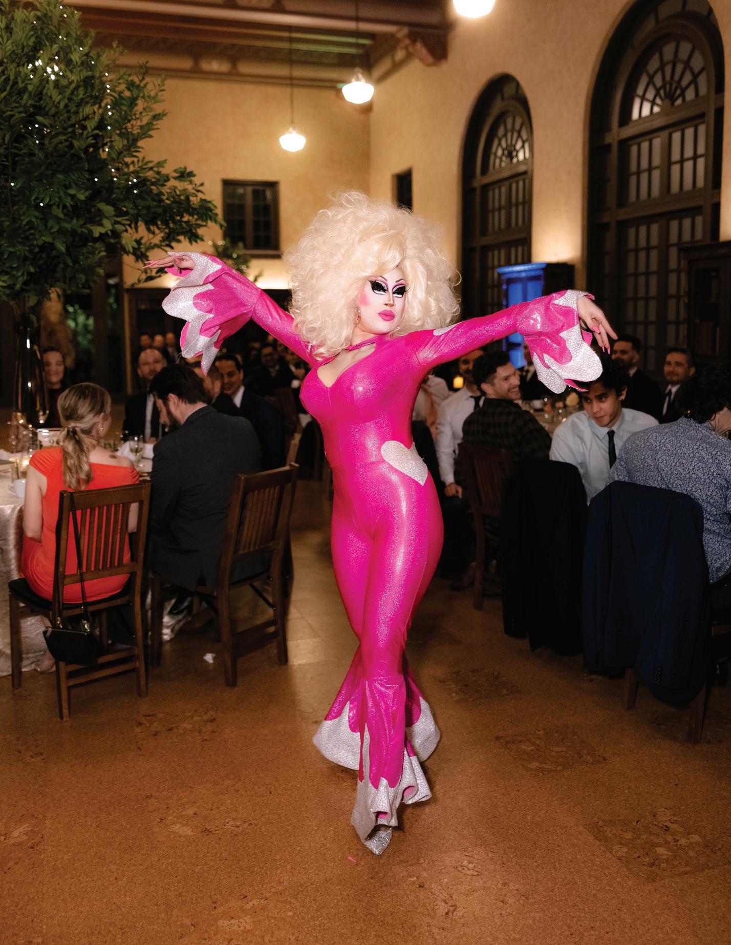 The night also included a special performance by drag artist Brigitte Bandit, one of Brian’s clients from his work with the ACLU of Texas. “It was really meaningful for her to perform,” Brian says. “Texas passed a law essentially banning drag, and we sued. So having her there performing Dolly Parton numbers was a highlight.”