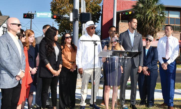 On October 14, 2025, Council Member Abbie Kamin joined other elected officials and community members at the Montrose Crosswalk to protest Governor Abbott’s attack on local communities. Pictured are elected officials and community leaders.
