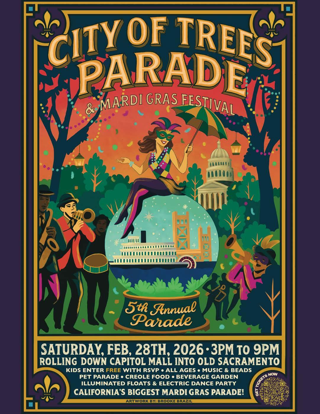 The fifth annual City of Trees Parade & Mardi Gras Festival lights up Capitol Mall, 700 Capitol Mall, at 3 p.m. Saturday, Feb. 28. The nonprofit celebration features live performances, food trucks, vendors and a dazzling evening parade with illuminated art cars, culminating in a high-energy dance party through 9 p.m. Kids enter free with RSVP. Cityoftreesparade.org
