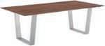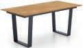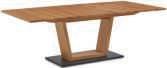 ESSTISCH, Platte Charaktereiche massiv mit Facettenprofil, Trapezkufengestell Eisen schwarz mit integrierten Rollen, ausziehbar per Front-Slide-Auszug mit ca. 100 cm Falteinlage, ca. 180-280x95 cm. LaVie Color Line 249 9,-