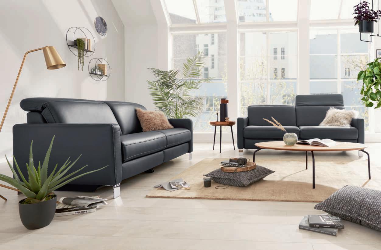 Interliving Sofa Serie 4054, Bezug Leder Longlife Credo anthrazit, Metallfuß chromfarbig, best. aus: 3-Sitzer und 2,5-Sitzer, Rücken Spannstoff, inklusive Kopfteilverstellung an allen Elementen. Ohne Zierkissen. M907914 208 253 6171