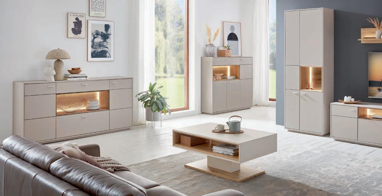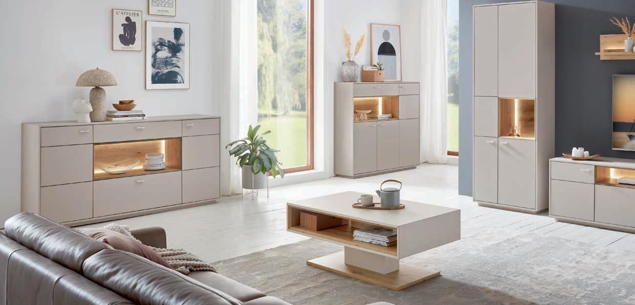 Mit mir stellst du dir deine Lieblingskombi einfach selbst aus vielen kombinierbaren Einzelmöbeln zusammen – z.B. aus Highboards, Sideboards, Vitrinen und Wandboards.