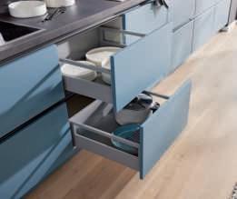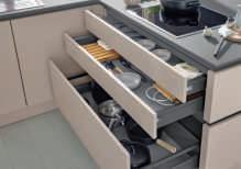 Geräumige Auszüge mit Softeinzug bieten beste Erreichbarkeit und Ordnung.
