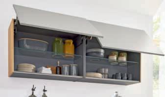 Die Hängeschränke mit Lifttüren lassen sich platzsparend bedienen.