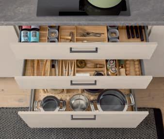 Vollauszüge mit praktischen Aufteilungen sorgen für perfekte Ordnung und schnellen Zugriff.