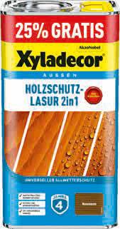 Bis zu 4 Jahre Wetterschutz, 2in1, keine Grundierung notwendig, für außen, Aqua-Tech-Nässeschutz, imprägniert Holz, schützt vor Wasser, UV-Schutz, matt, Farbe „Nussbaum“. 5 L. Versch. Farben. Art.-Nr. 46124601