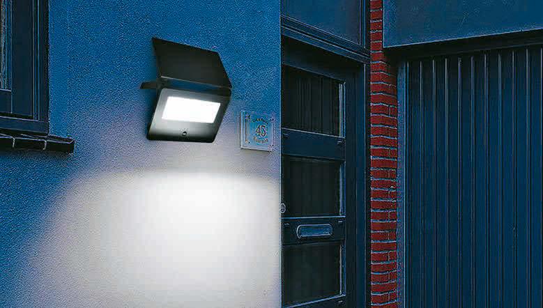IP44, Bewegungsmelder, Glas/Aluminium, Flutlicht.