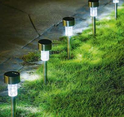 IP44, Betriebsdauer bis zu 8 Std., mit Erdspieß, kaltweißes Licht, Kunststoff, silber/weiß. Ca. Ø 10 x H 38 cm. 3erPack. Inkl. LED-Modul und Akku. Art.-Nr. 46440379